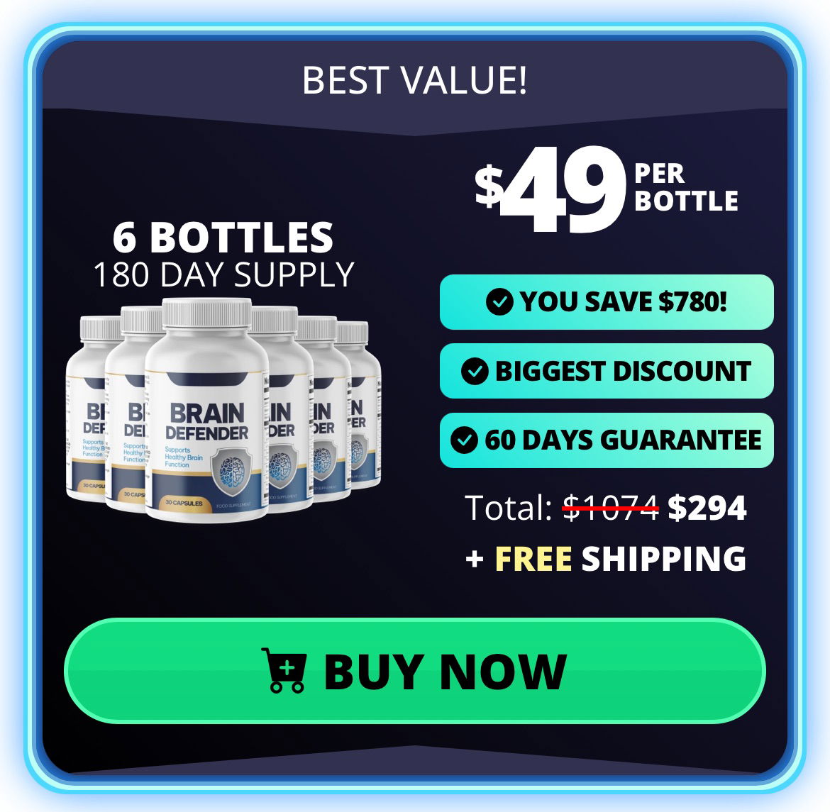 If you want to think faster, remember better, and maintain lasting cognitive performance, purchase only from the official BrainDefender website. There you’ll receive the genuine, clinically tested formula, backed by our 60-day no-questions-asked money-back guarantee — so you can experience real results, risk-free.
